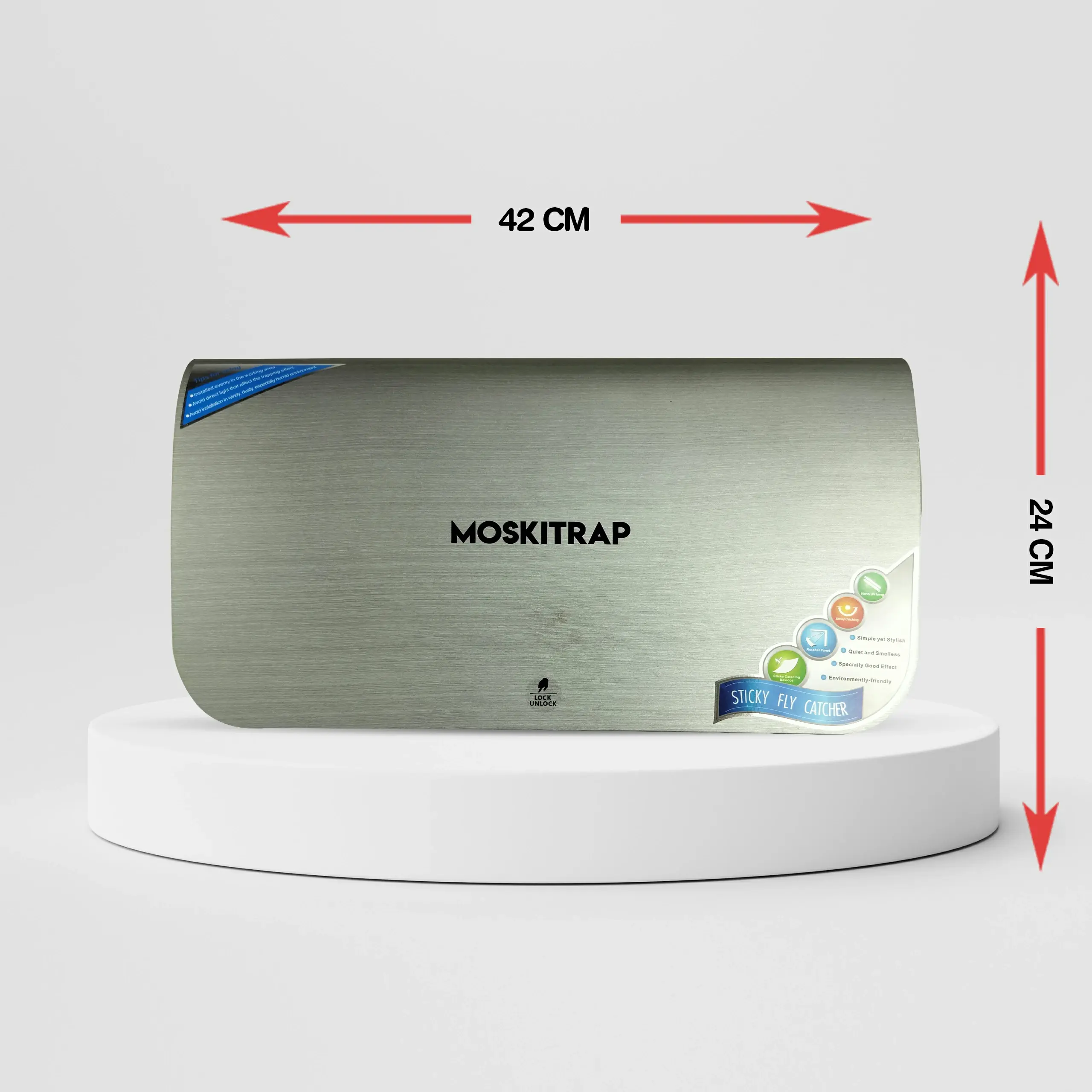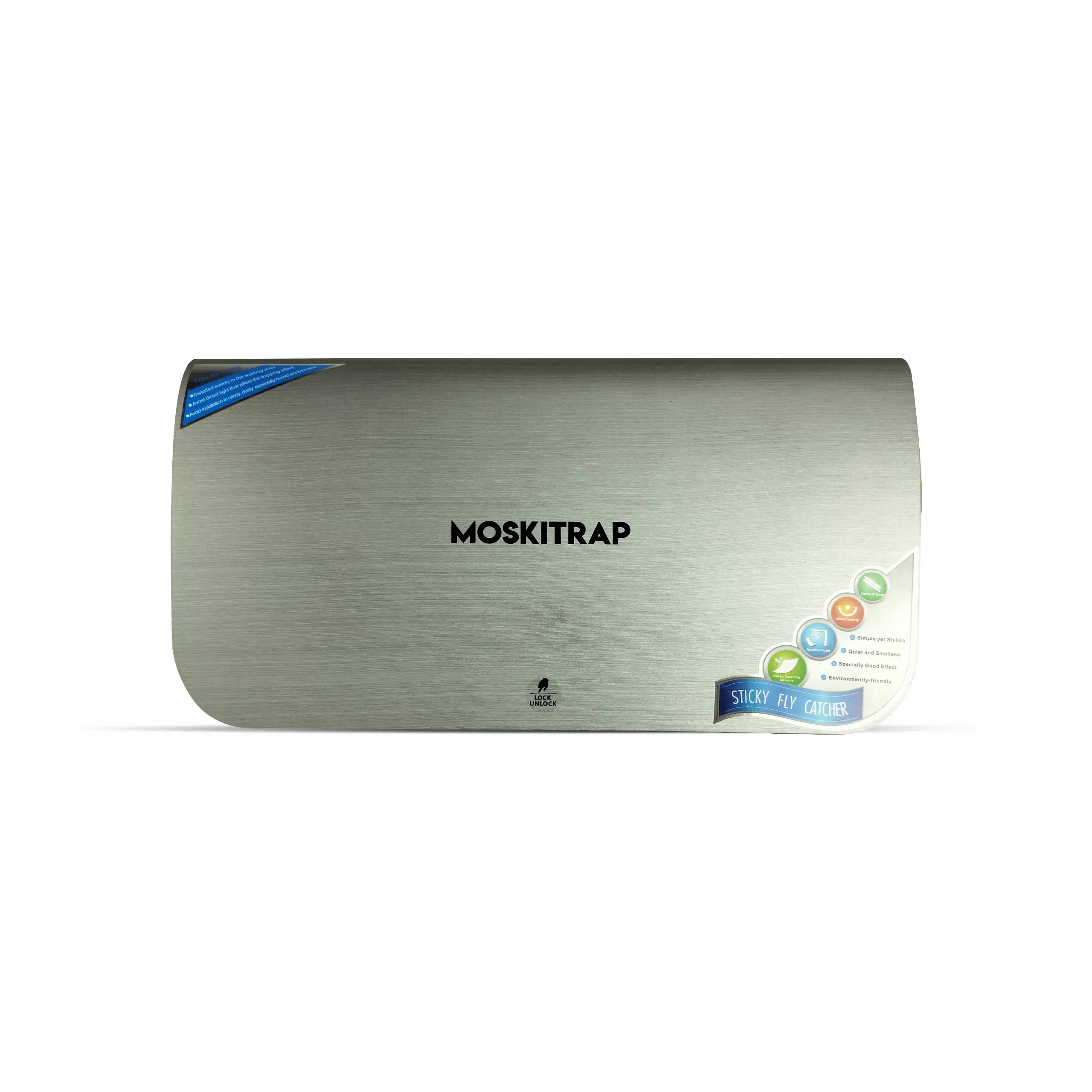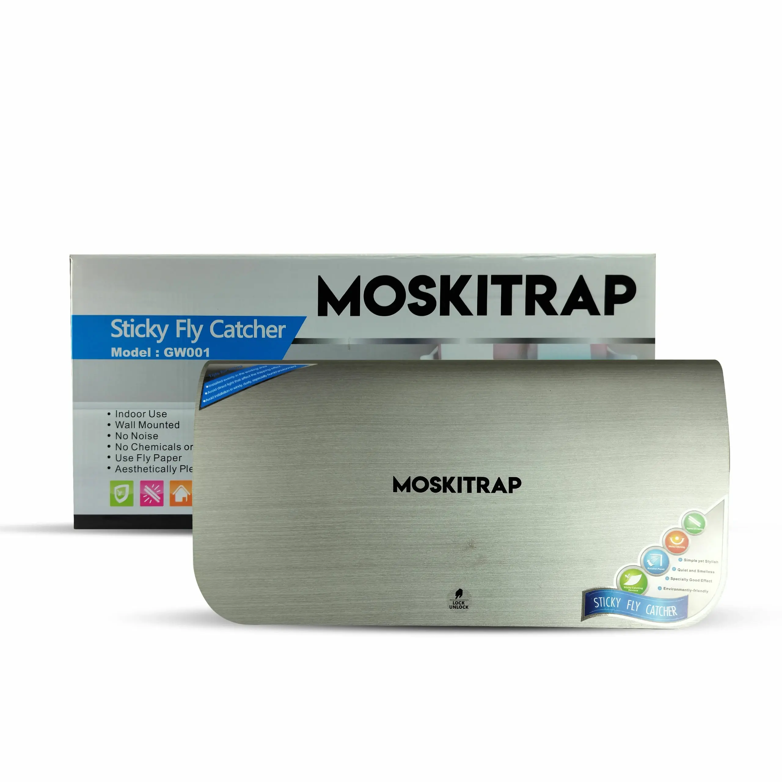 MOSKITRAP GW001 Sticky Fly and Mosquito Catcher | Covers up to 250 Sq. Ft. The package includes 1U MOSKITRAP GW001 Sticky Fly and Mosquito Catcher, 2U Sticky paper, 1U Instruction manual, 3U Wall Plug, 3U Screws, 2U Covering cap.