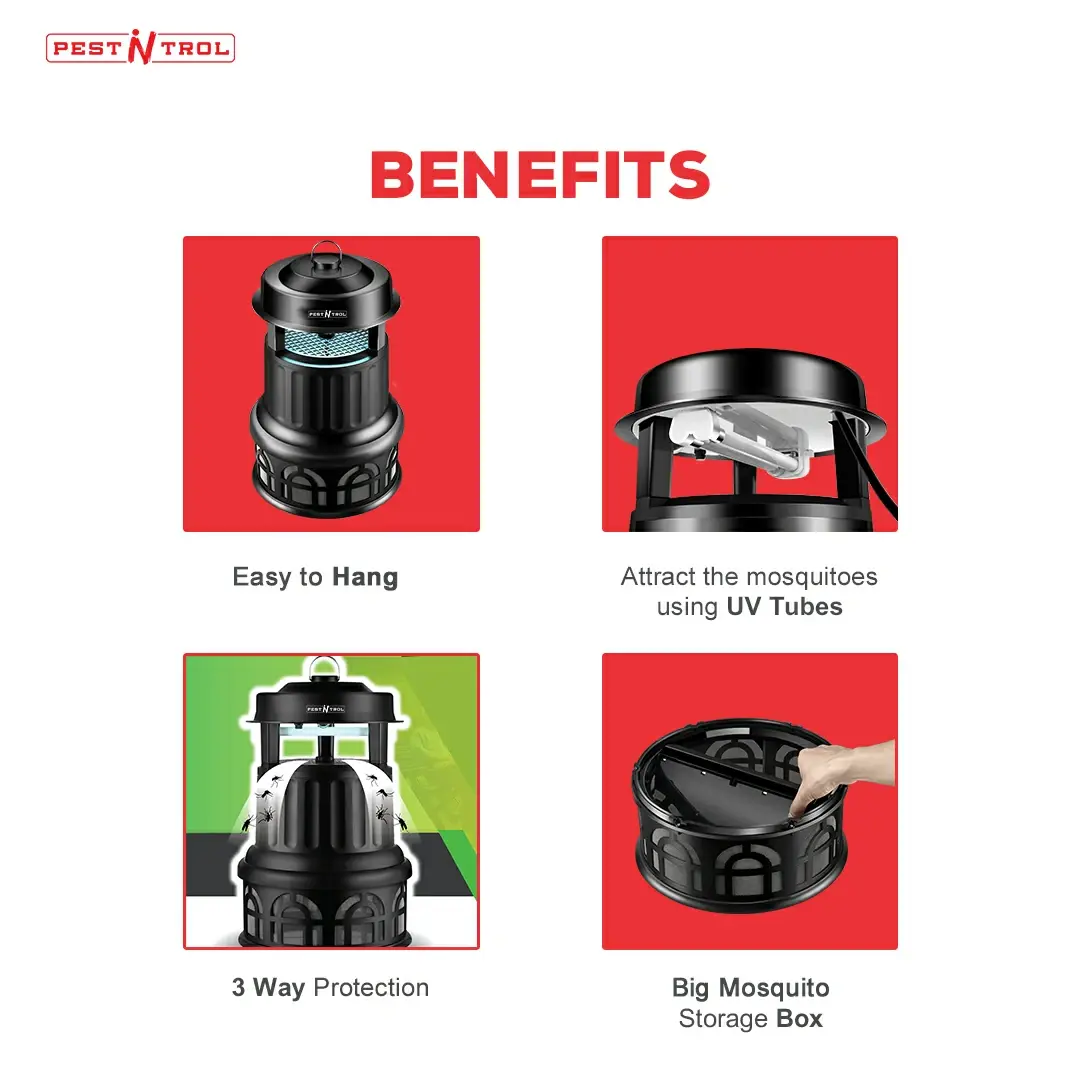 No one likes the buzzing of mosquitoes in the middle of the night. Put an end to all the buzzing and sleep peacefully with Moskitrap. This device creates No Noise. Effective up to 1000 sq.ft. area. (unobstructed area depending upon the ligts in the area) No smoke, heat or pesticides. No Zapping. Safe around children. Odour Free. High-Tech New Product/Nano-Wave/Anti Mosquito Lamp Using an LED light source,360 Degree all-round light,no dead angle for mosquito trapping Use the artificial light source to trap mosquito, use the upgrade airflow vortex system strong suction mosquitoes, three-dimensional surround, and trapping. Integrated mosquito storage box design,no-oxidizing to clean and super durable Mosquito escape prevention design so that mosquitoes can only get in and out a net Efficient and energy-saving silent design mosquito catching quiet and odorless.Let you sleep in peace Use in the room at a height of about one meter the effect is better This Product Is Widely Used In Villas, Courtyards, Residential Building, Hospitals, Bars, Apartments, Kinder-gardens, Restaurants, Cafes, Cinema, Farm, Field, And Other Venues Users tips: The mosquito trap killer in the bedroom must be opened in advance(at least 3 hours). Do not turn it on until bedtime. The effect is better in the uninhabited environment because people’s body temperature and smell are more attractive to mosquitoes. This product uses the physical way to kill mosquitoes, it can't kill a mosquito when just turning it on. Do not open the bottom tray immediately in the morning because the mosquitoes trapped inside the tray may fly out. Keep it running for 2 more hours so that the mosquitoes suffocate to death. For the trap to work efficiently it should be placed far away from the fan and the room should be kept as dark as possible.